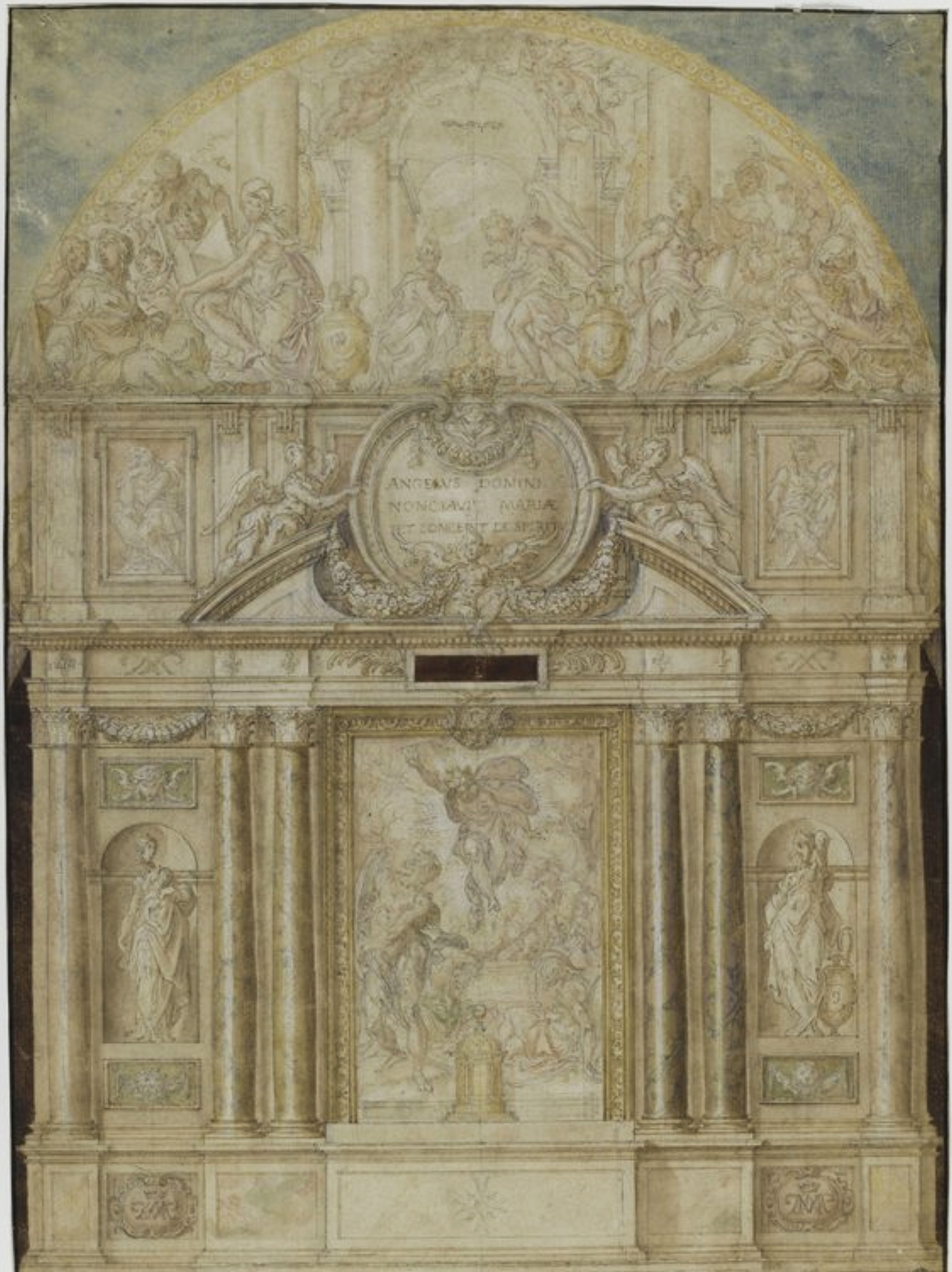 Martin Fréminet (1567-1619), design for the high altar of the chapelle de la Trinité, château de Fontainebleau, 1611, pen-&-ink, wash, black chalk, white heightening, watercolour, 46.5 x 33.5 cm., Département des Arts graphiques, Musée du Louvre