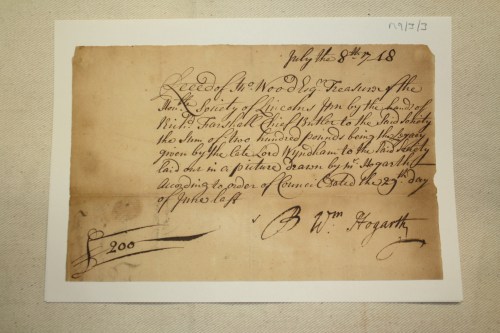 Hogarth receipt of money for picture 1748 Archive ref M9 3 3