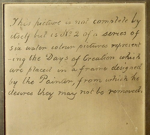 Burne Jones Inscription reverse of no 2 Days of Creation