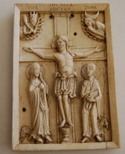 Ivory plaque with the Crucifixion between Mary and St John German c1130 Trustees of the British Museum sm