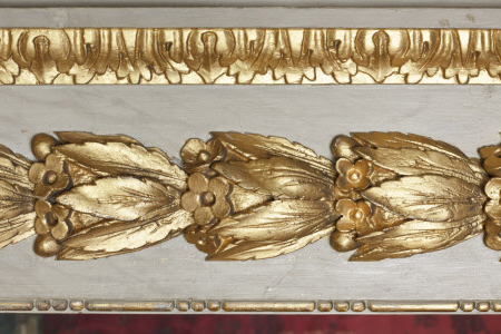Close view of the gilded moulding in the Queen’s Bedchamber at Ham House, Richmond-upon-Thames, Surrey.
