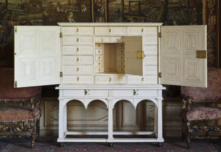 Ivory cabinet, c1655-1660, probably Flemish or Dutch, in the North Drawing Room at Ham House, Richmond-upon-Thames