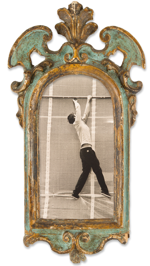 A frame does not only separate a piece of art from its surroundings, it establishes a relationship with the pictorial elements it contains. The main focus of the exhibition is upon the interaction of contemporary photography with the antique picture frame: an interaction which creates on both sides a mutual, attention-seeking confrontation.