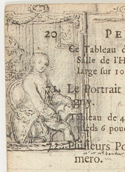 Gabriel de Saint-Aubin (1724-80), two details of a sketch of Roslin’s Portrait of the Marquis de Marigny on relevant page of his catalogue of the Paris Salon, 1761, Bibliothèque Nationale, Paris