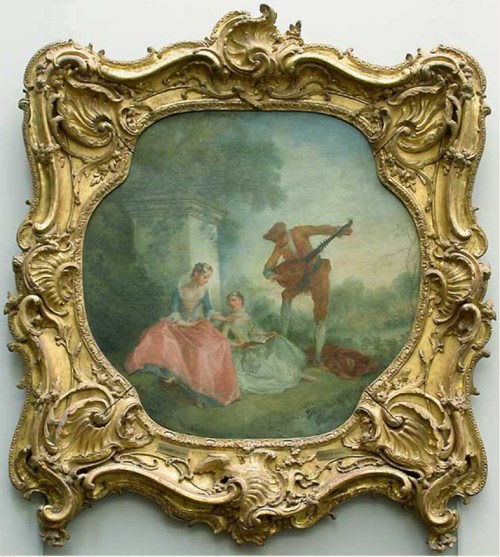 The frame is thus noted independently of the picture; its ornamentation singles it out. In 1753 the Abbé Le Blanc criticized the exaggerated importance given to a mere accessory of the painting: ‘It is not right that the opulence of the frame should strike the viewer more than the picture,’ and he added, deploring the decadence of decorative painting: