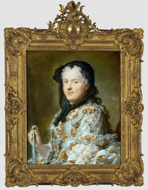 First of all, the artist: La Tour and Nattier were closely involved in the framing of some of their pictures. The carver Louis Maurisan, who produced frames for both painters, submitted invoices in 1748 for framing portraits of Louis XV and Marie Leczynska: ‘Maurisan’s time for designs, including one for M de la Tour,’[23] whilst a bill for a frame executed in 1754 by the same carver carries the note,