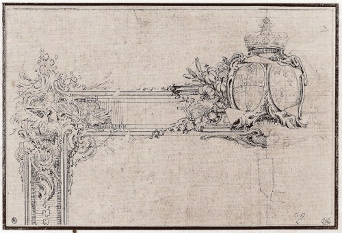 Drawings for the frame of the portrait of Louis XIV by Charles Le Brun given by the King to the Duc d’Antin; Bibliothéque Nationale, Paris