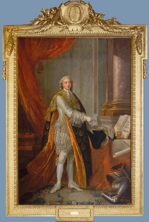 After François-Hubert Drouais (1727-75), Louis-Stanislas-Xavier, Comte de Provence, c.1774, frame by François-Joseph Duret, Musée des Beaux-Arts d’Angers. Frame later cut down for installation in the museum