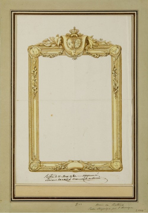Attributed by Pons to François-Charles Butteux (1732-88); attributed by the museum to Charles Buteux l’aîné (1719-82), design for a frame, 1780, pen, ink & watercolour, 34.5 x 24 cm., Musée des Arts Décoratifs, Paris; 38634