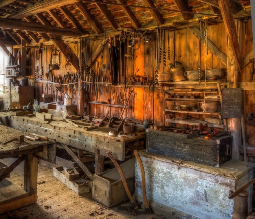 19th century carpenter’s workshop & original tools, Weald and Downland Museum. Photo: Anguskirk