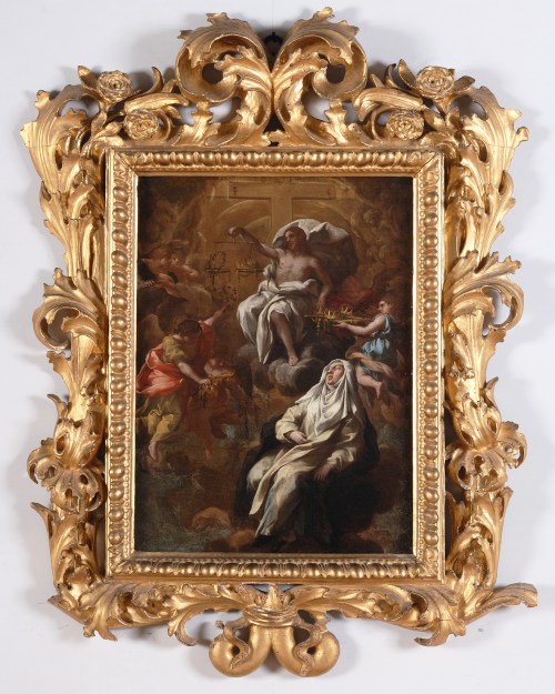 Lazzaro Baldi, The ecstasy of Santa Rosa da Lima, c. 1668, in Baroque leaf frame with roses, Palazzo Chigi Ariccia
