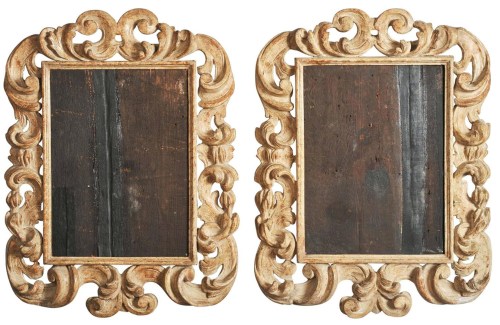 A pair of Baroque Italian frames with a faux stone finish, 18 x 14 ins, 1680-89, John Bly