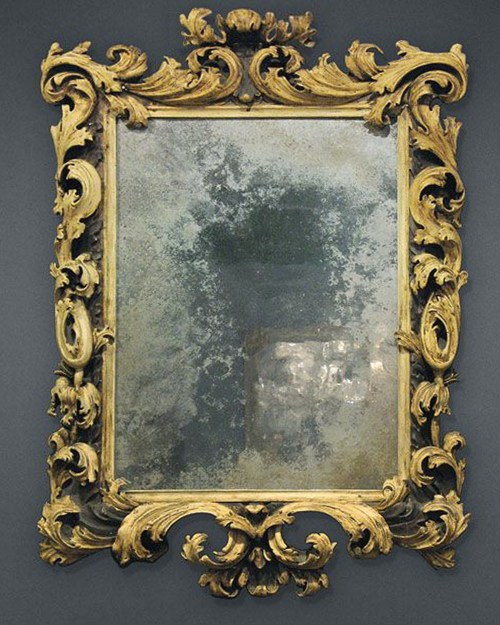 A plain stone finish on a piece of furniture or a frame suggests a location closer to the outside world: probably in a room which gives onto a garden, and which might accommodate a summer dining-room or reception room. In this sort of space a collector might hang paintings of the hunt, pastoral mythological scenes, flowerpieces, game pieces, pictures of food, series of the seasons or the elements – or, of course, a series of looking-glasses to reflect the light and views of the garden.