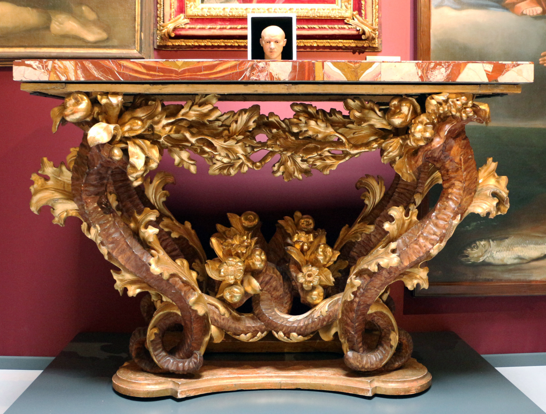 Antonio Chicari (fl. 1652-71), console table designed by Bernini, 1663, marble, giltwood & polychrome, Palazzo Chigi Ariccia