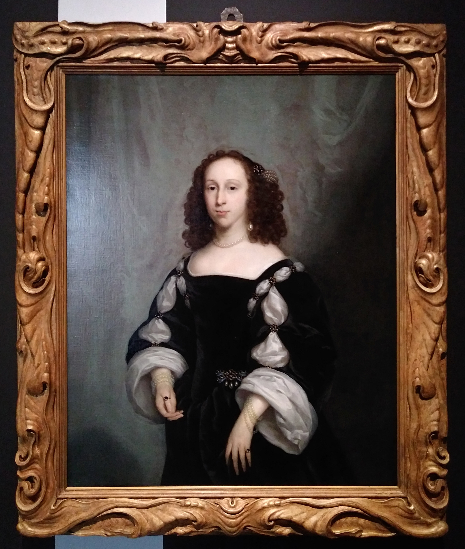 Cornelis Jonson van Ceulen I, Portrait of Cornelia Strick van Linschoten, pendant to Jasper Schade, above; Utrecht, 1654, o/c, 113 x 90 cm., unknown framemaker, Auricular giltwood frame, 1654, & detail; Rijksmuseum Twenthe, Enschede