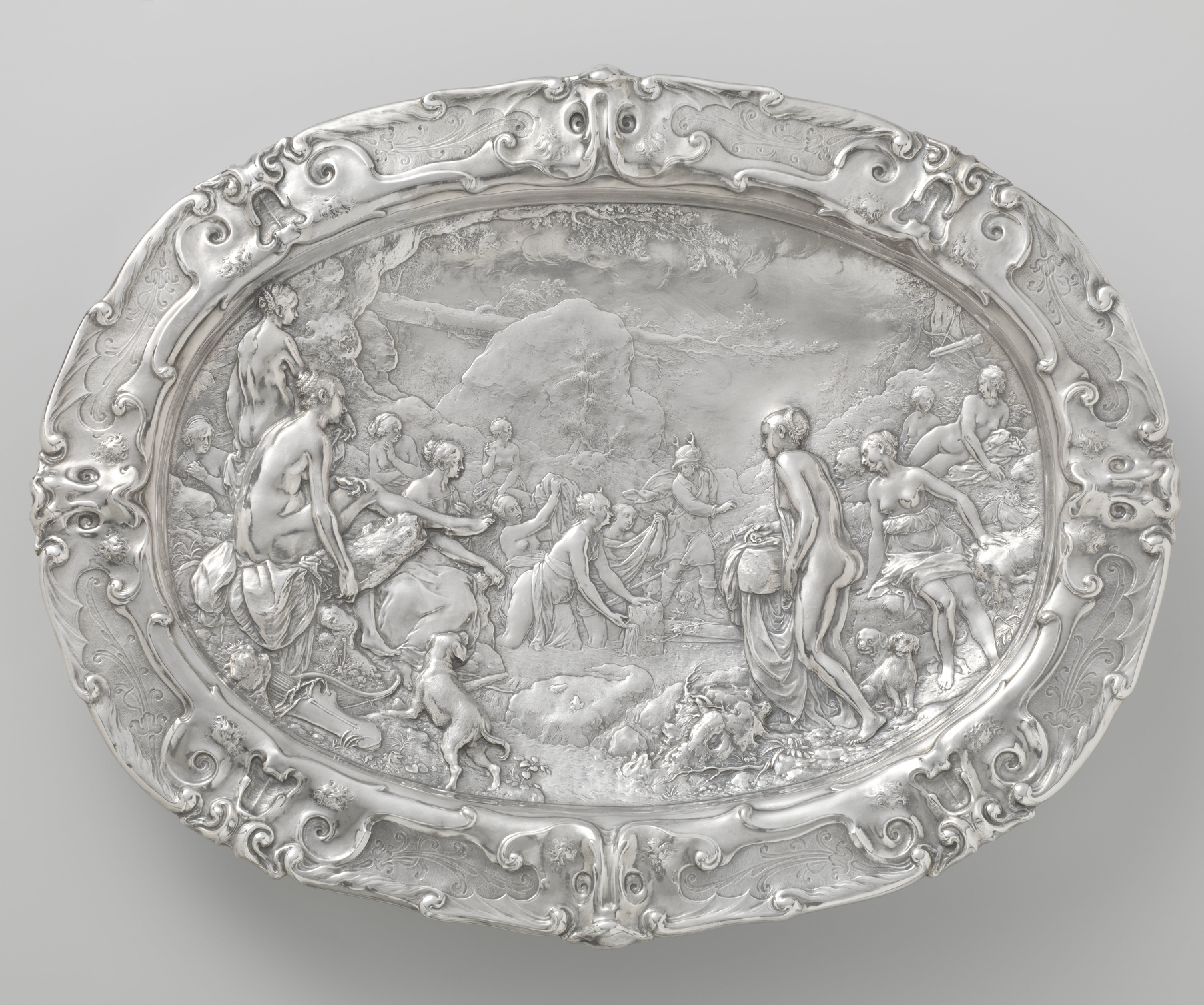 Paulus van Vianen, basin with scenes from the story of Diana & Actaeon (one of a set with a ewer), Prague, 1613, silver, 40 x 50 cm., Rijksmuseum, Amsterdam