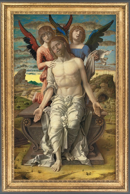 Andrea Mantegna (c.1431-1506), Christ as the suffering Redeemer,1495-1500, tempera on panel, 78 x 48 cm., Statens Museum for Kunst, montaged into a ‘Salvator Rosa’ frame after the 18th century design used in the Gonzaga collection