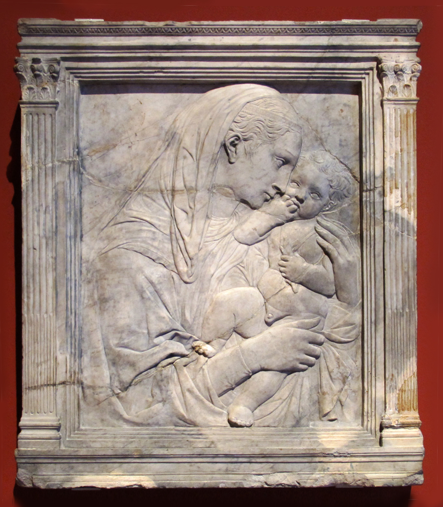 Donatello (c.1386-1466), Madonna & Child (Pazzi Madonna), c.1420, marble, 74.5 x 73 cm., later frame,  Bode Museum, Berlin