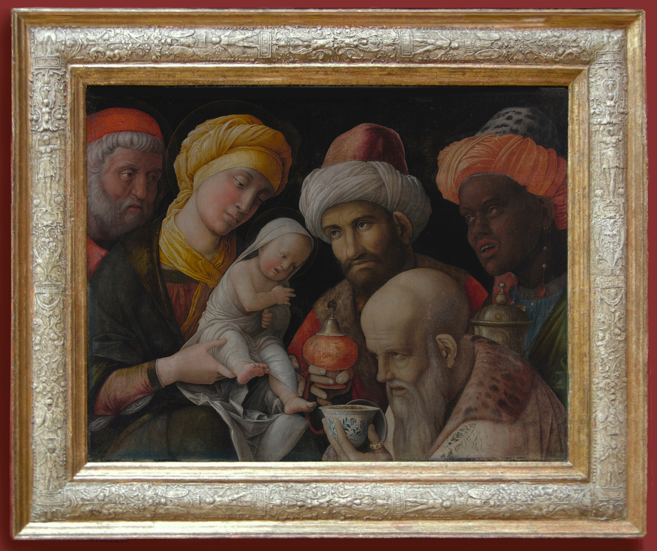 Andrea Mantegna (c.1431-1506), The Adoration of the Magi, c.1495-1505, pigment & size on canvas, 48.6 x 65.6 cm., J. Paul Getty Museum, Los Angeles