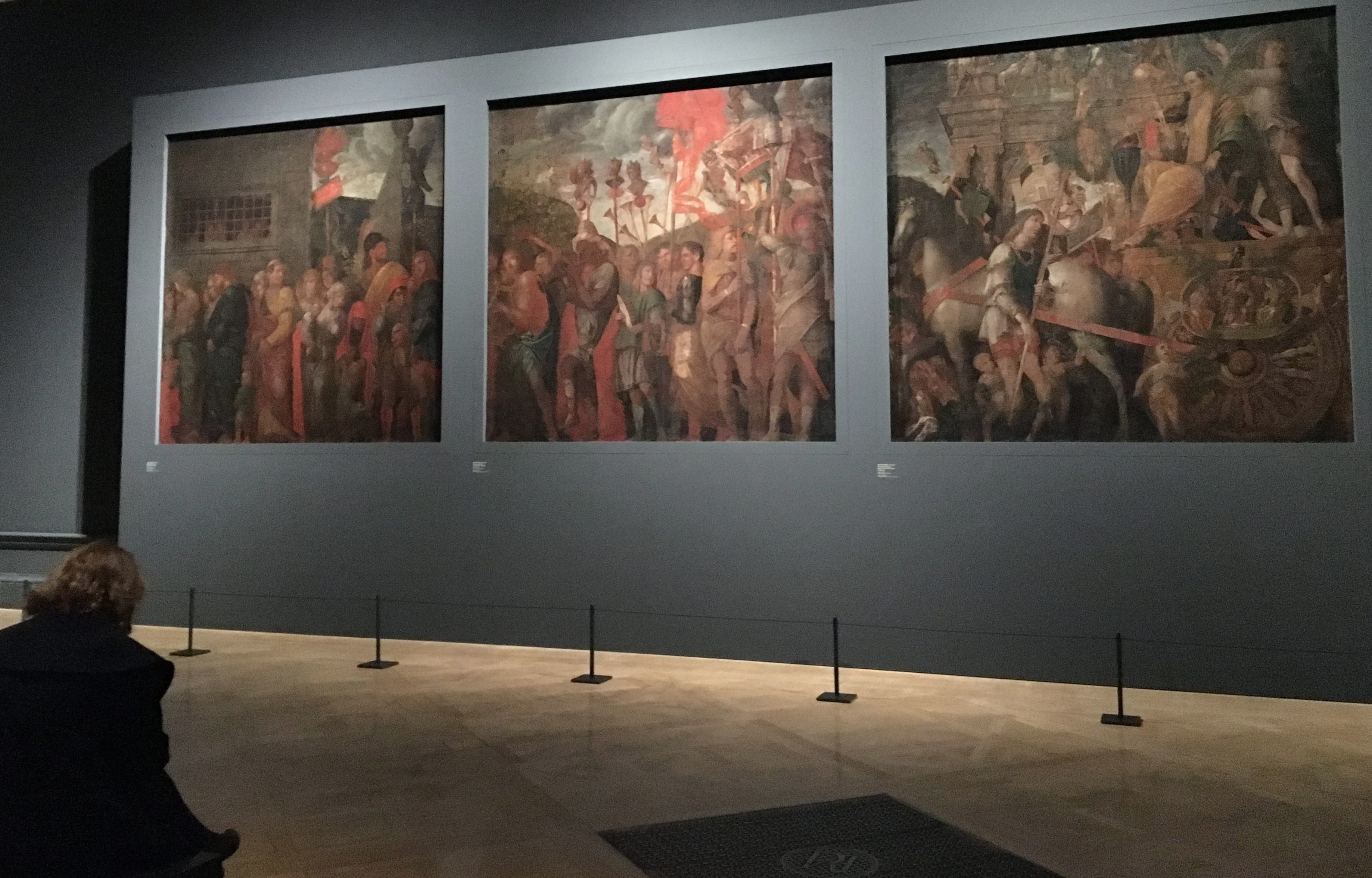 Mantegna, The triumphs of Caesar on display in the exhibition at the National Gallery, Mantegna & Bellini; below, with Peter Schade