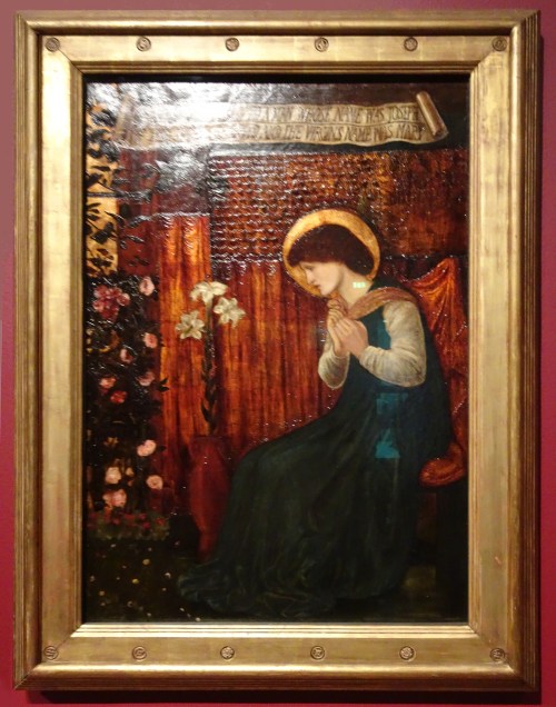 Edward Burne-Jones (1833-98), The Adoration of the kings & shepherds triptych, first version: 1860-61, o/c, right-hand wing with the Virgin Annunciate (108.6 x 73.7 cm.), in its original frame of c.1862/63, and detail of left-hand wing; Tate Britain