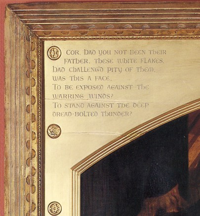 [16] The details and date of this frame appear in a letter from Brown to his patron James Leathart: ‘…I am glad that the frame of King Lear is so much to your taste – I had told Green to employ all or any of my patterns, as it might spread a taste for a different kind of thing from the debased article now in use…’, 8 February 1863; information from Mary Bennett