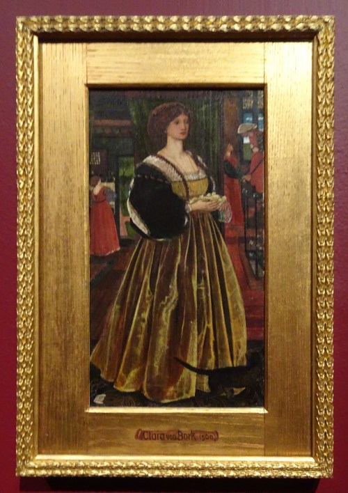 Unfortunately, however, Burne-Jones’s father was not the most competent of framemakers, and the bay-leaf astragals around the pendant, Clara von Bork, have had to be replaced. As Georgiana Burne-Jones noted,
