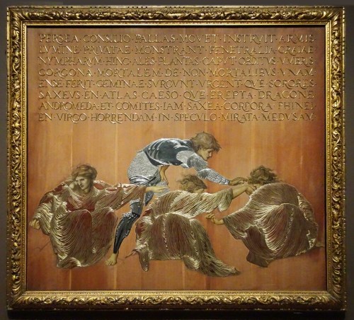 The ‘swan’s head frame’ was also used for the series of paintings depicting the legend of Perseus, the existing oil paintings for which are now in the Staatsgalerie in Stuttgart.
