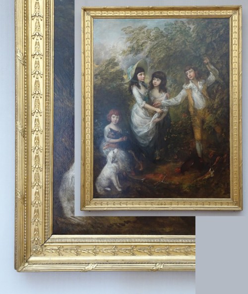 Thomas Gainsborough (1727-88), The Marsham children, 1787, o/c, 95.6 x 71.6 ins (243 x 182 cm.), Gemäldegalerie, Berlin; acq. 1982, but representative of 18th century British style for Bode: NeoClassical frame with leaf-bound fasces on the top edge, and centred pendant garland of moulded bell-flowers in the frieze