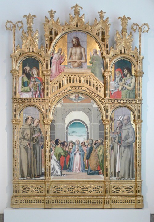 […] Mainardi (c.1460-1513), Madonna & Child with John the Baptist and three angels, Gemälgalerie, Berlin, in Schinkel frame with matching paterae in the […]