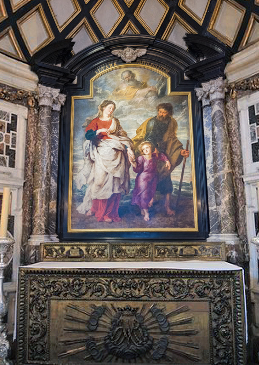 Peter Paul Rubens (1577-1640), Return of the Holy Family, 1624, Church of St Charles Borromeo, Antwerp; returned in 2012 to its original altarpiece frame after 140 years in the collection of the Metropolitan Museum, New York