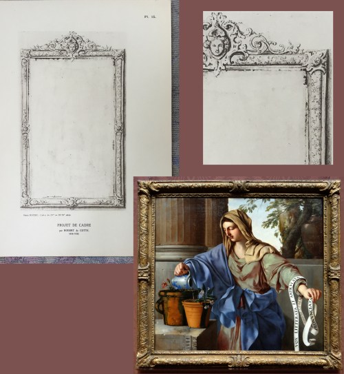 Plate 15 of Cadres français et etrangers…: ‘Projet de cadre par Robert de Cotte. 1656-1735’; with Laurent de La Hyre (1606-56), Allegory of Grammar, 1650, National Gallery, London