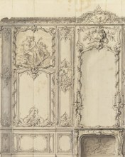 Germaine Boffrand (1667-1754), Elevation of state bedchamber showing Tremolières’s Hercules & Hebe set into boiseries, Hôtel de Soubise, Paris, pen, ink and wash, detail; Cooper Hewitt, Smithsonian Design Museum