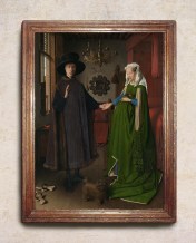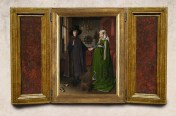 Jan van Eyck (fl.1422-d.1441), The Arnolfini portrait, 1434, o/panel, 82.2 x 60 cm., National Gallery: a reconstruction of its possible appearance when in the collection of Carlos II of Spain, c.1700: