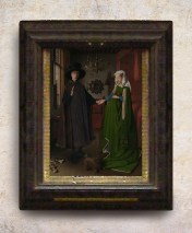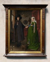 Van Eyck in 19th century frame from National Gallery storage; returned to the painting in 1998