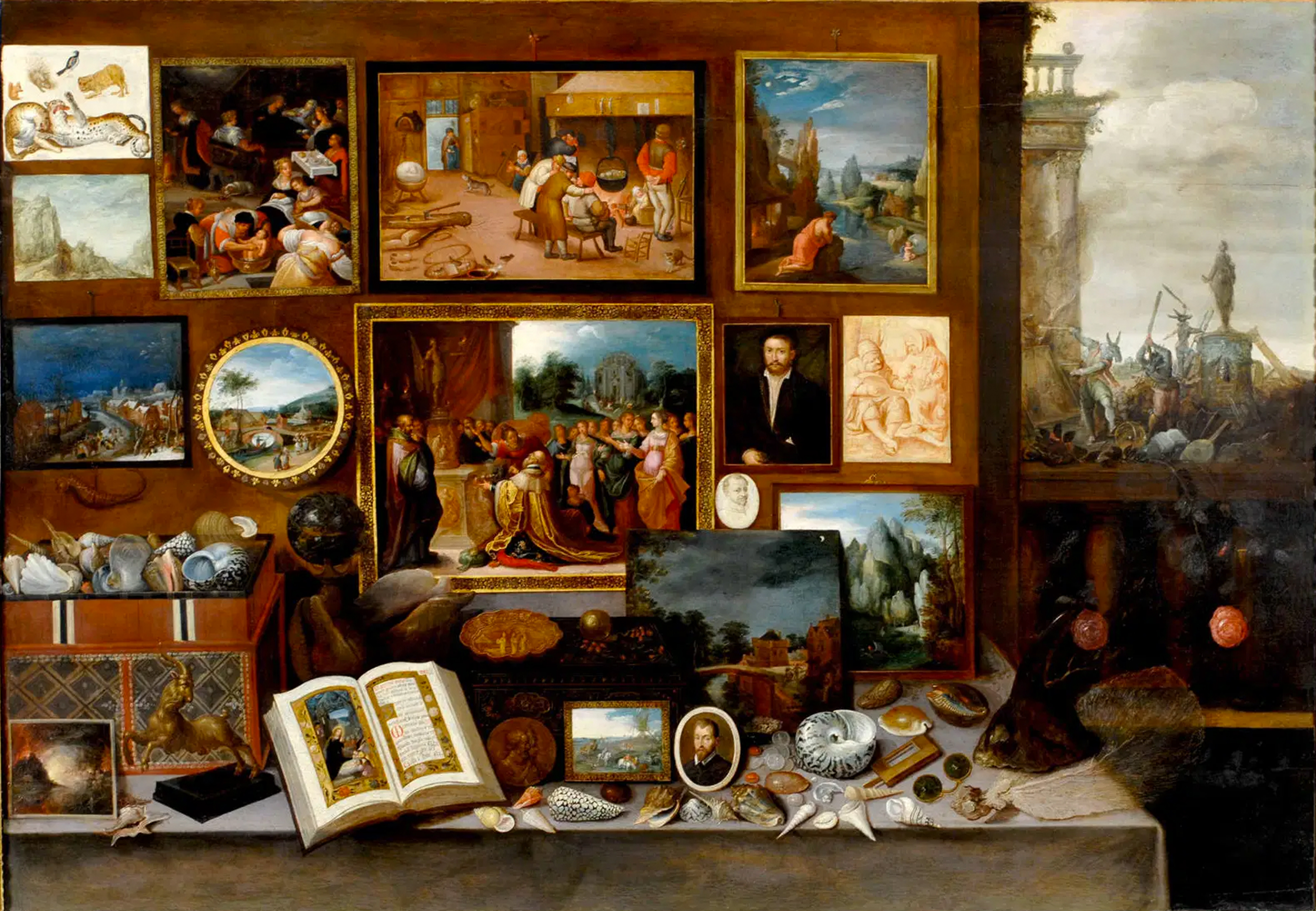 Frans Francken II (1581-1642), Interior of a wunderkammer, d.1620-26, Quadreria della Società Economica di Chiavari Chiavari