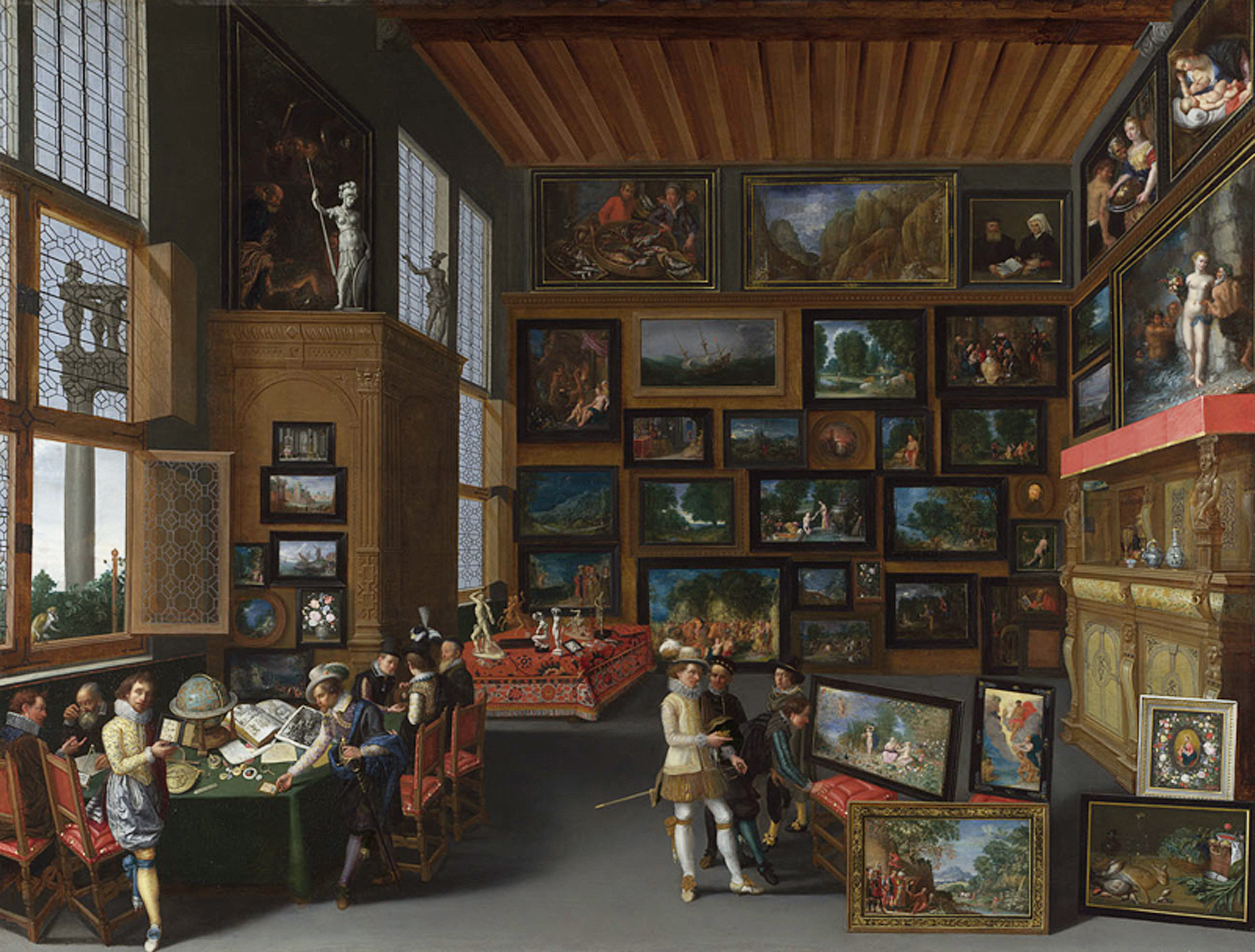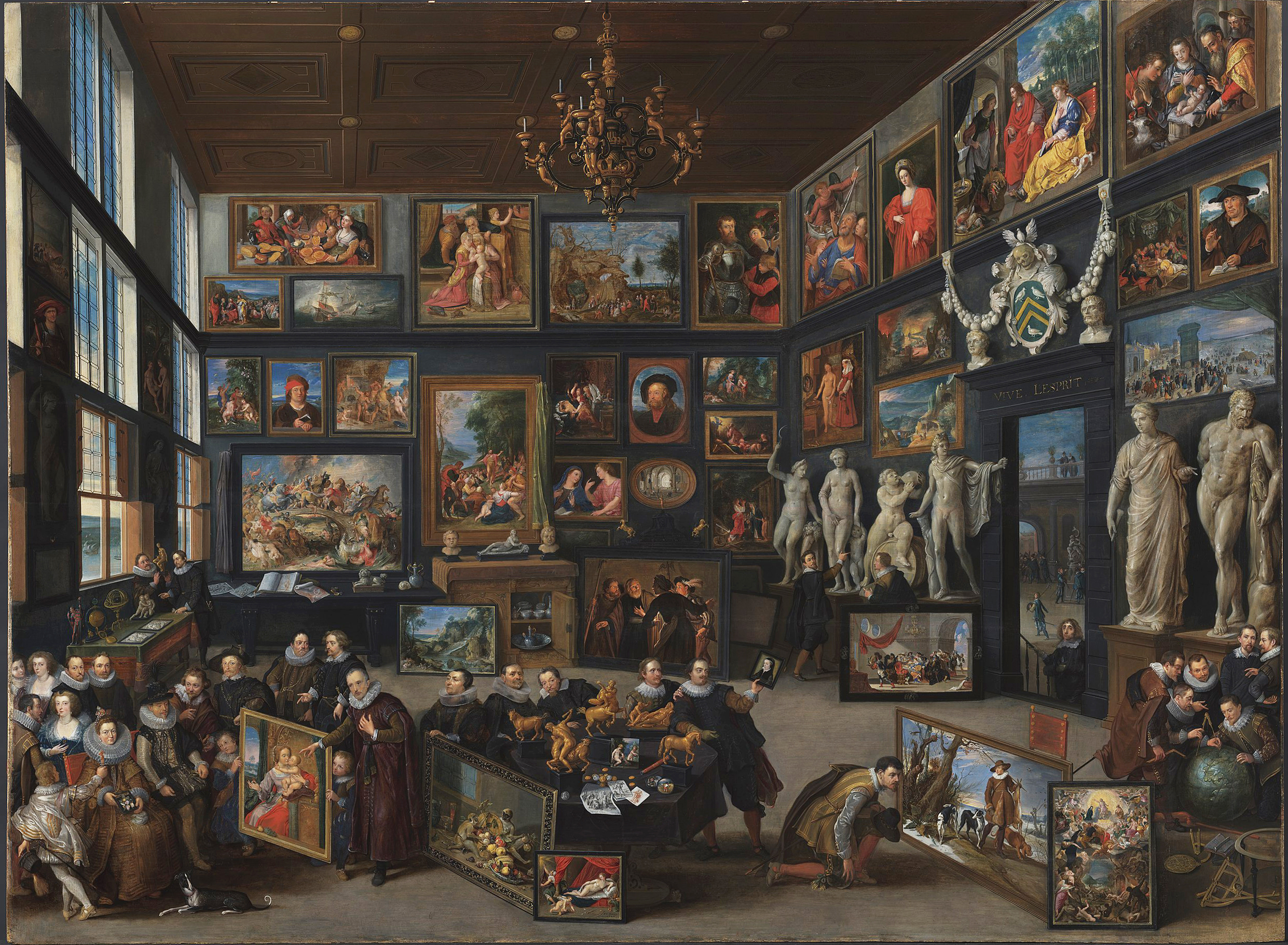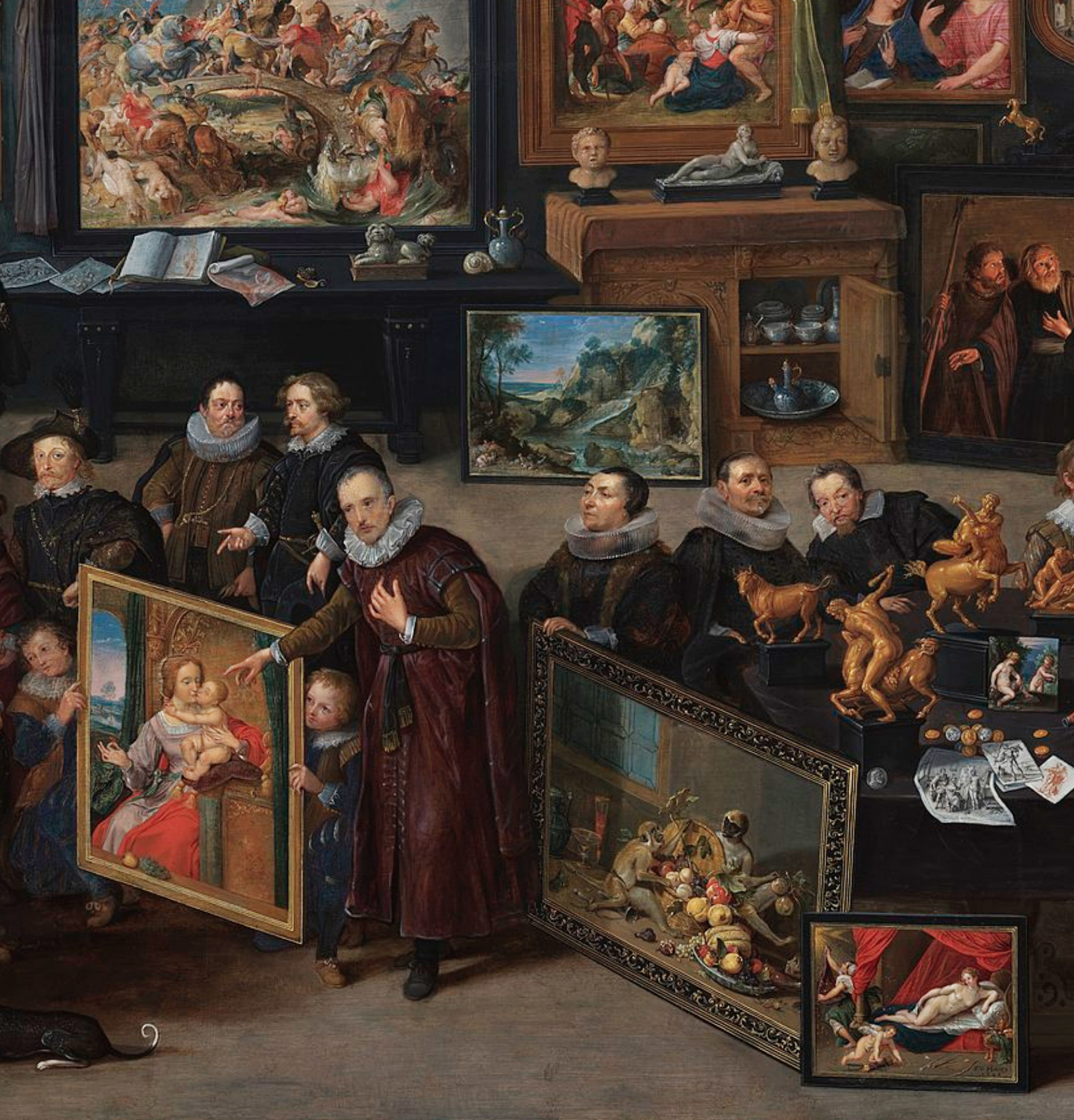 Frans Francken II (1581-1642), & David Teniers II (1610-90), Interior of a picture gallery, c.1640, o/panel, 58.5 x 79 cm., and detail, Courtauld Gallery