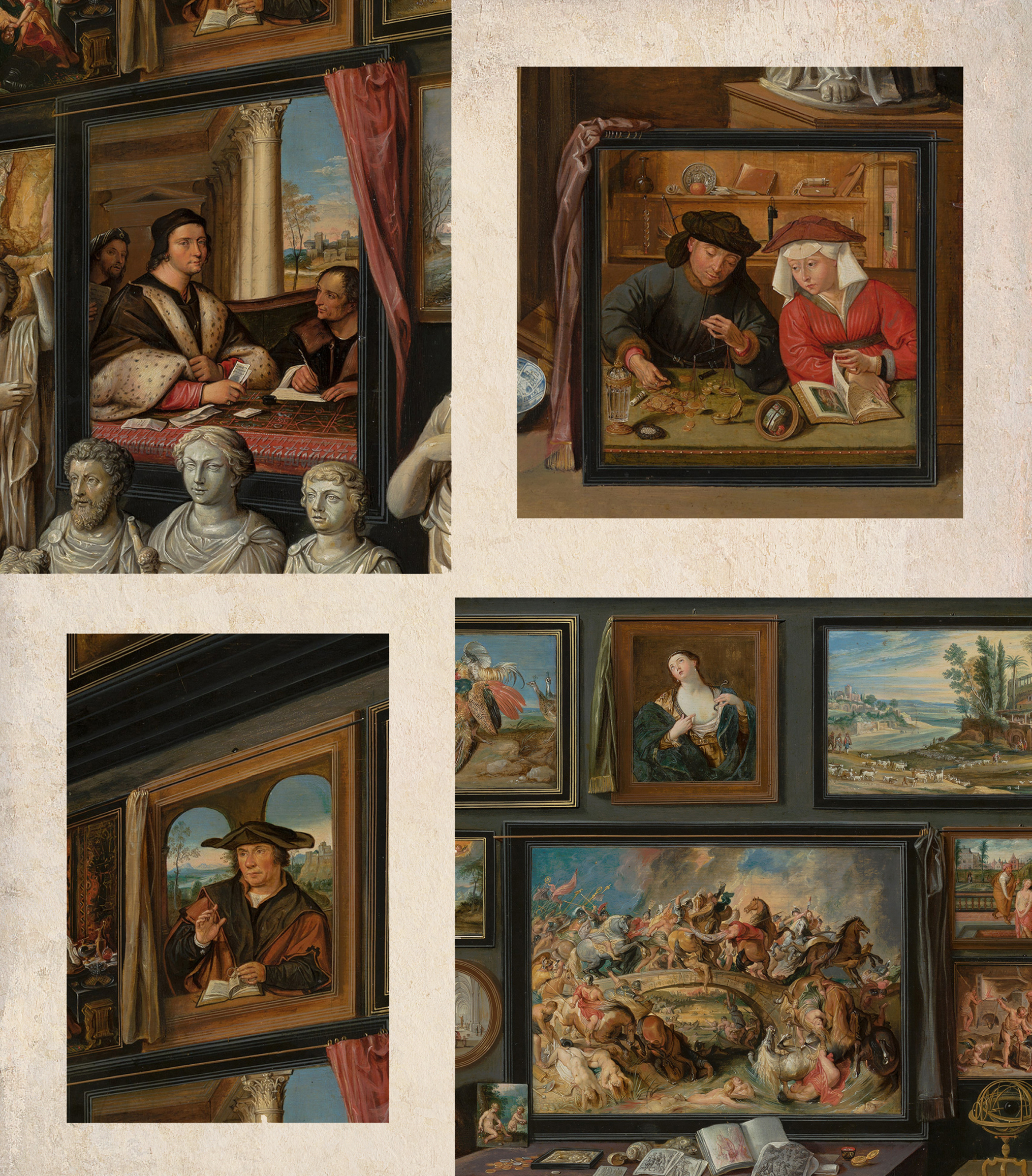 David Teniers II (1610-90), details from the various views of Archduke Leopold Wilhelm’s gallery in Brussels, painted from 1651-53