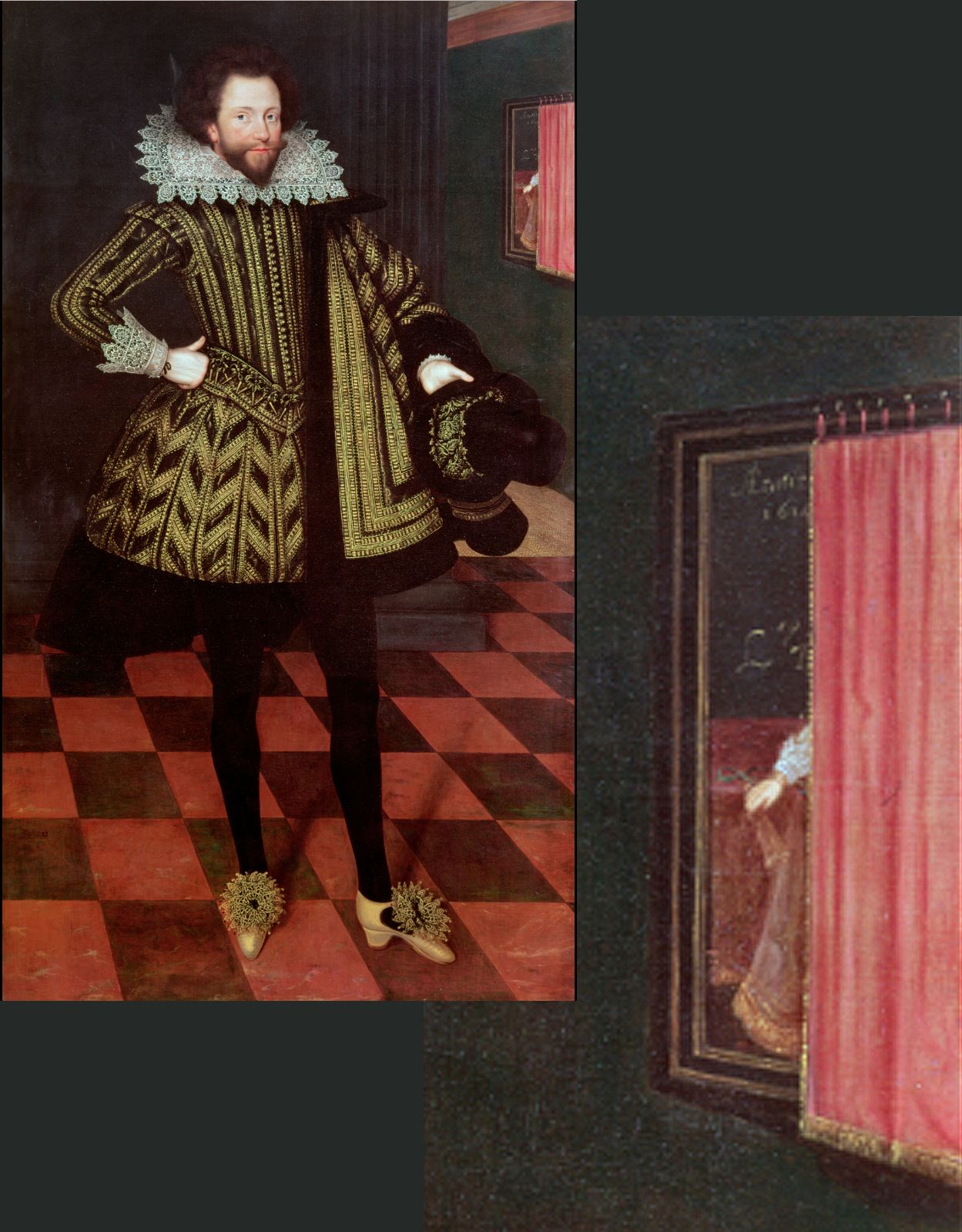 Marcus Gheeraerts the younger (c.1561-1635), Sir John Kennedy of Barn Elms, 1614, and detail, Woburn Abbey