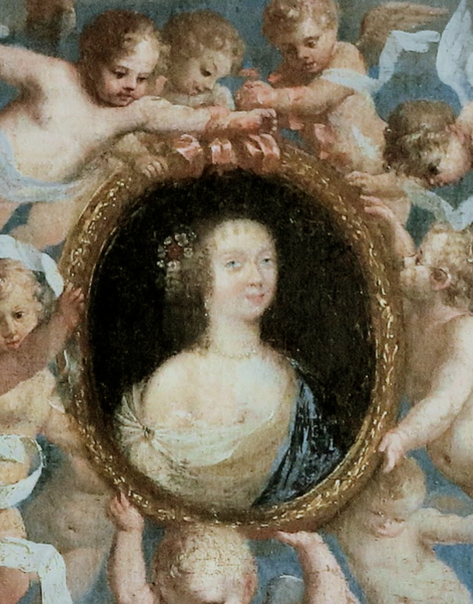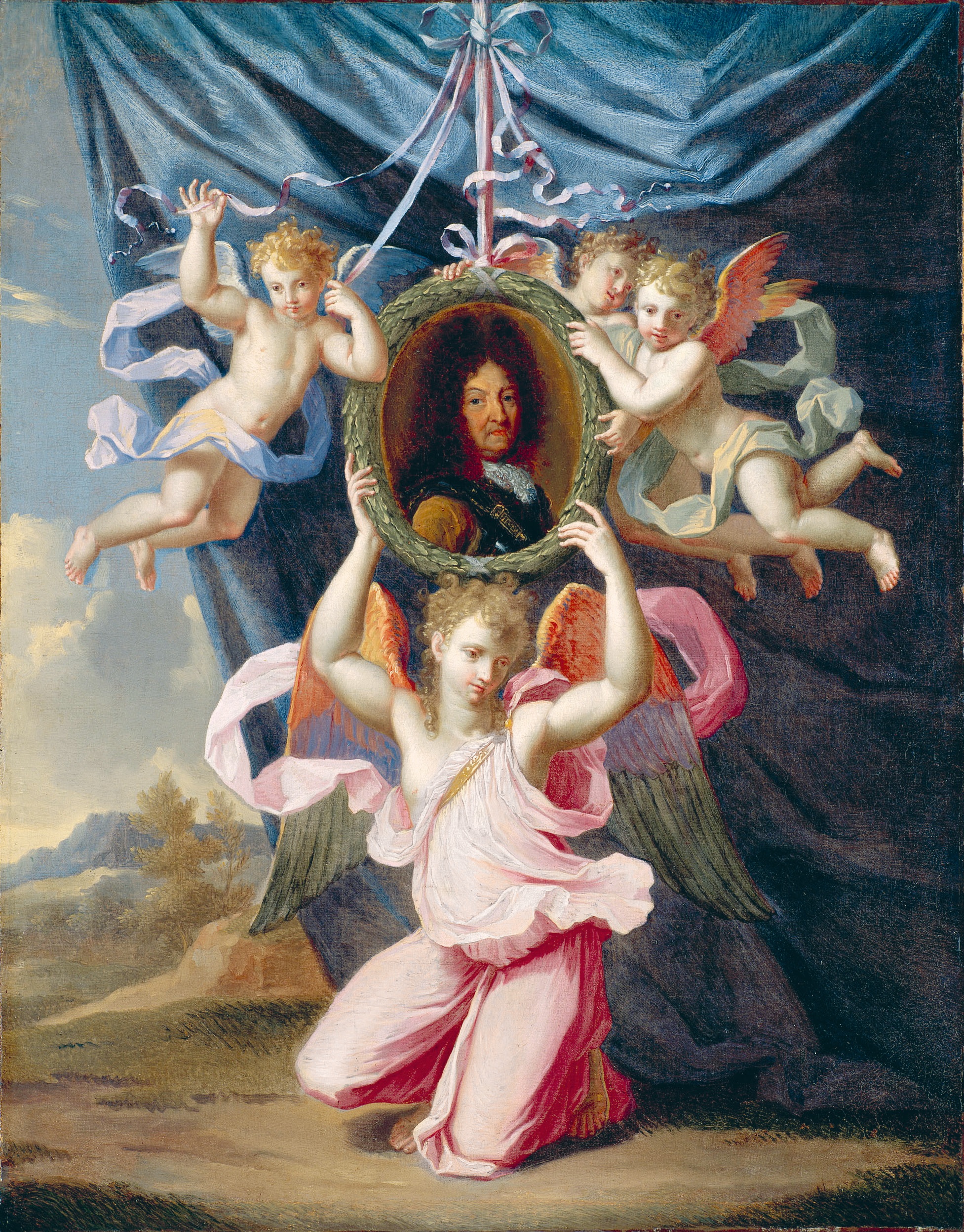 Noël Coypel (1628-1707), Anges présentant le médaillon de Louis XIV, and detail, Rennes, Musée des Beaux Arts