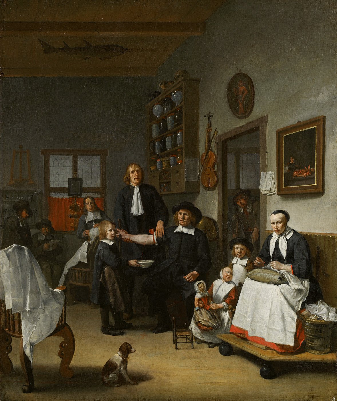 Egbert van Heemskerck (1634/35-1704), Jacob Fransz., surgeon, and his family, 1669, 70 x 59 cm., and detail, Amsterdam Museum