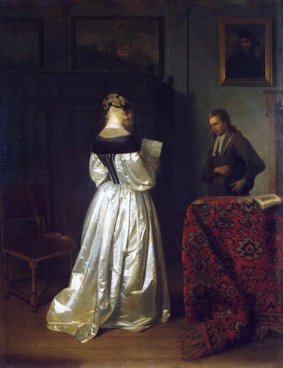Gerard ter Borch (1617-81-), The letter, 1650-60s, o/c, 70 x 54 cm., and detail, State Hermitage Museum