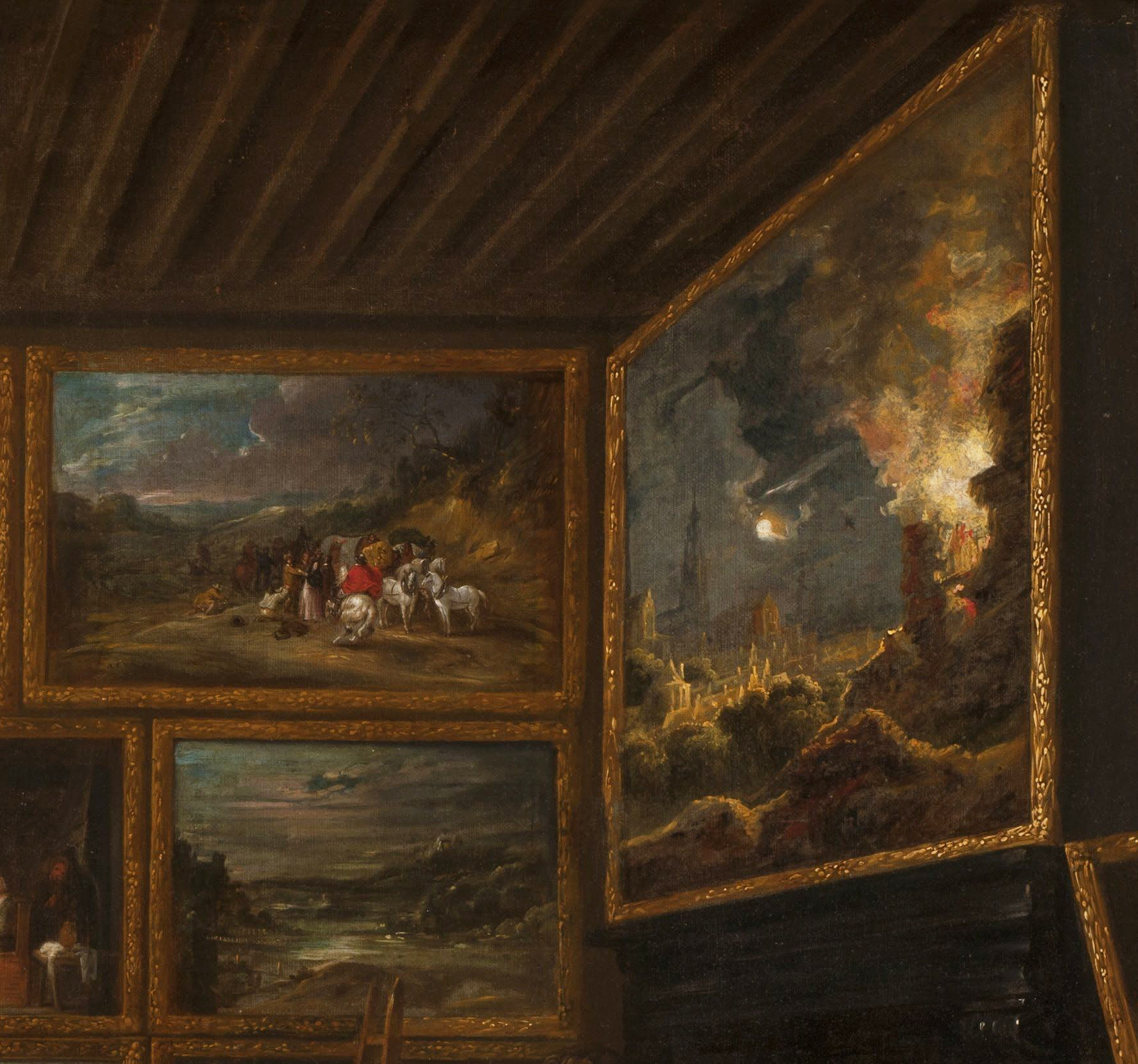 His various paintings of the picture collection of the Archduke Leopold Wilhelm formed a sort of pictorial catalogue, which was the precursor to a printed version illustrated by engravings. However, accurate as the individual pictures might have been, within the various views of the gallery in Brussels, the frames as he showed them cannot be trusted.