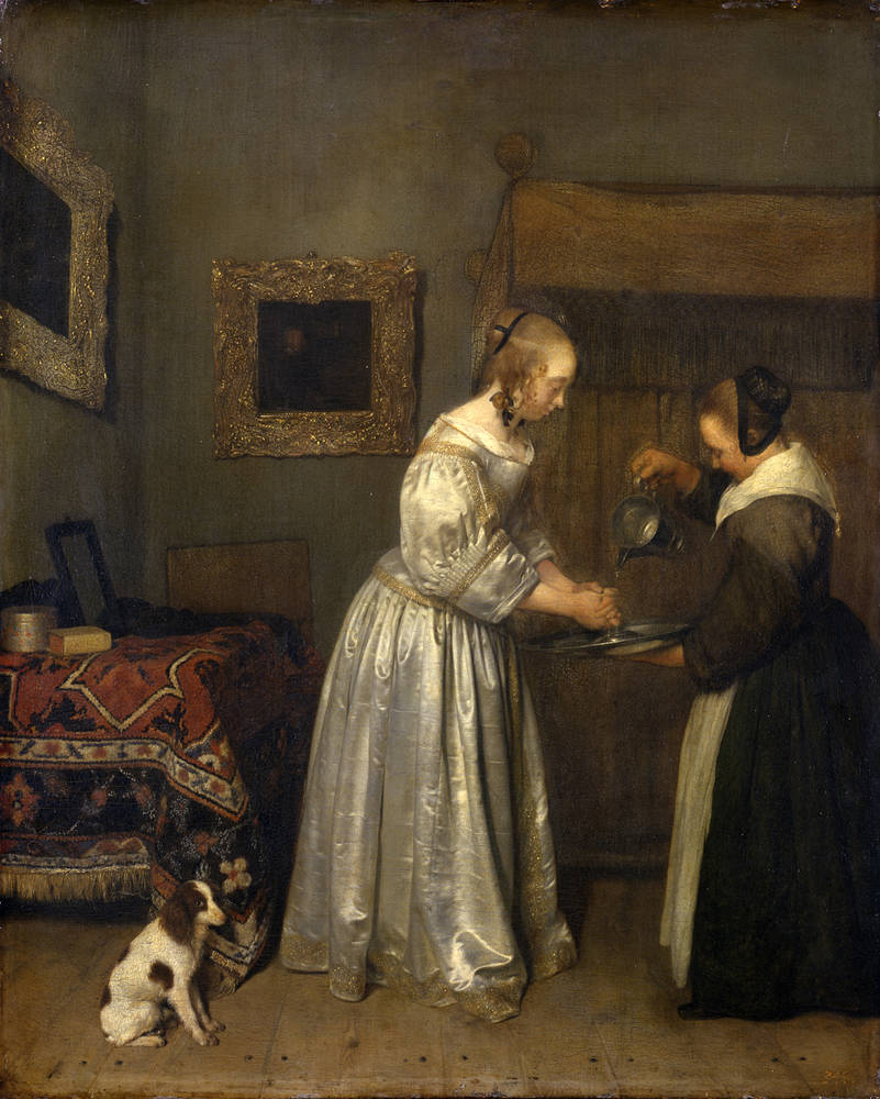 Gerard ter Borch (1617-81), Woman washing her hands, c.1655, o/panel, 53 x 43 cm., Gemäldegalerie, Dresden