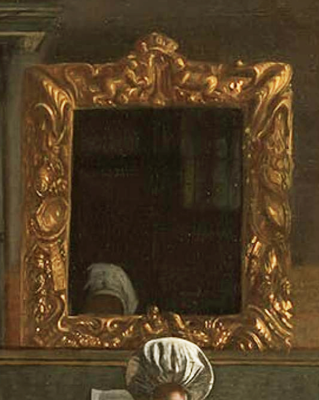 [11] There are also large, purely decorative and wealth-displaying Auricular looking-glass frames in Emmanuel de Witte’s Portrait of a family in an interior, 1678, and Pieter de Hooch’s Woman handing a coin, 1670, Sotheby’s New York, 4 June 2009