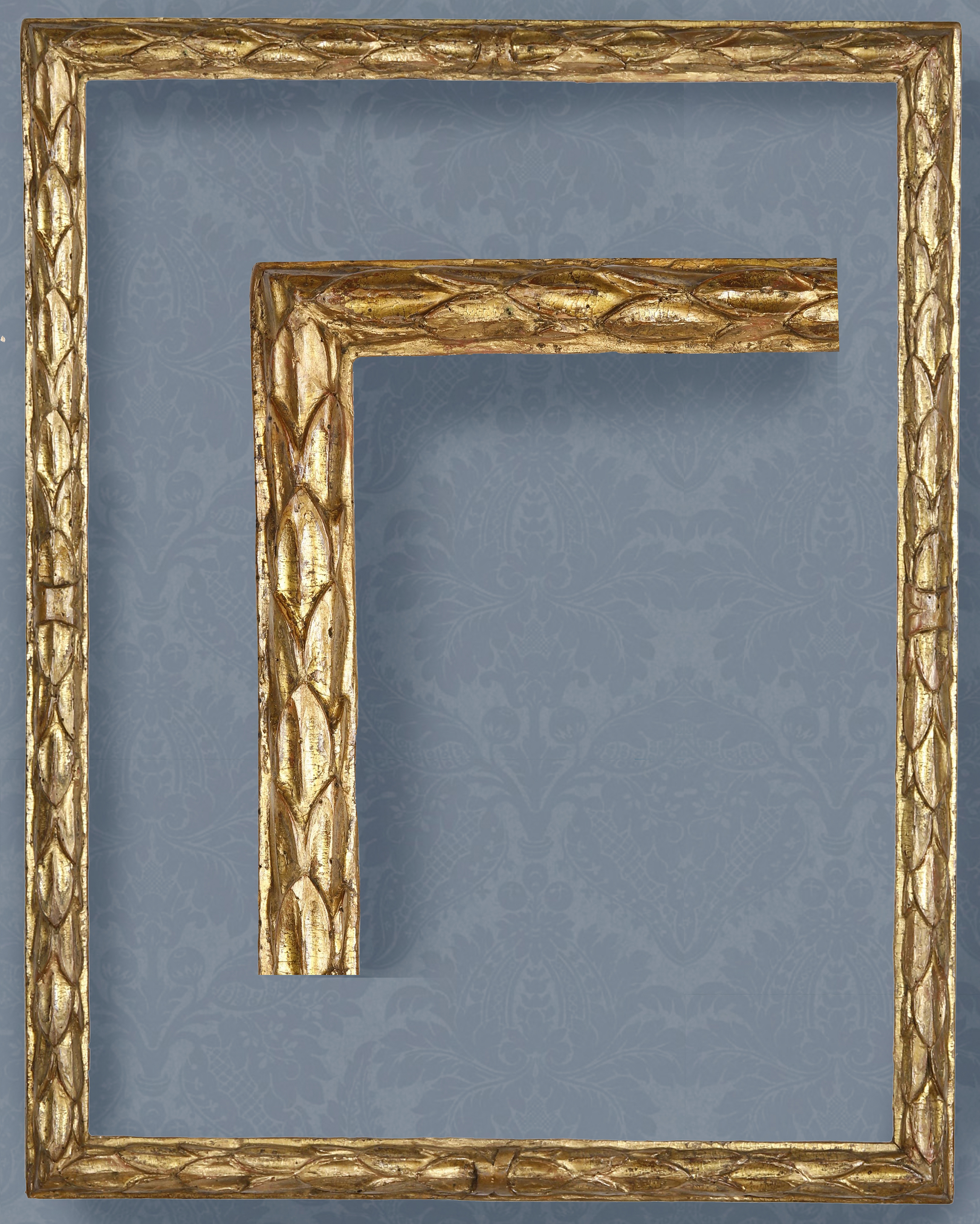 Lot 174: late 16th -17th century Italian (described at Piedmontese) carved giltwood garland frame, with torus profile; decorated with a bound and centred imbricated bay leaf garland; 61 x 46.7 cm.: estimate: €1,000-1,200