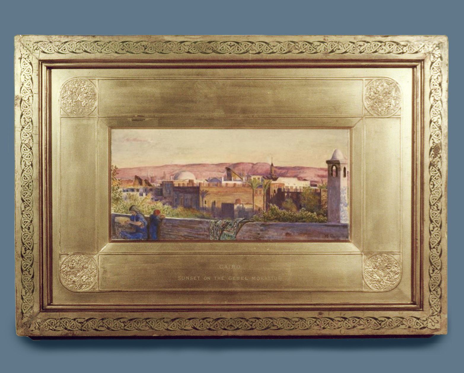 Holman Hunt (1827-1910), Cairo: sunset on the Gebel Mokattum, 1854 & 1860-61, watercolour, 16.5 x 35.6 cm., frame: 44.2 x 63.4 x 3.1 cm., & detail, Whitworth Art Gallery, University of Manchester