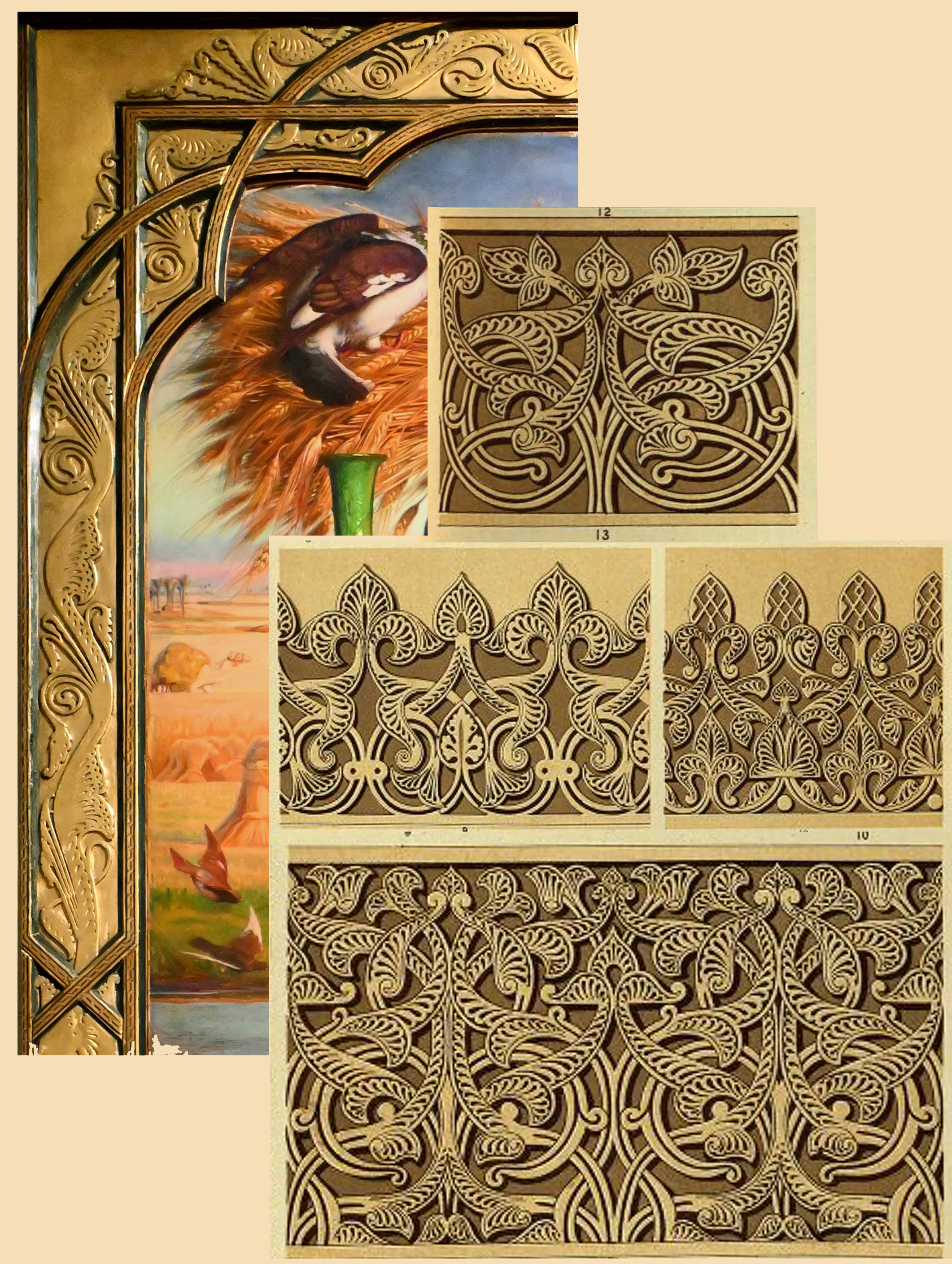 Holman Hunt, The afterglow in Egypt, detail of frame, and details from Owen Jones, ‘Arabian No 2‘
