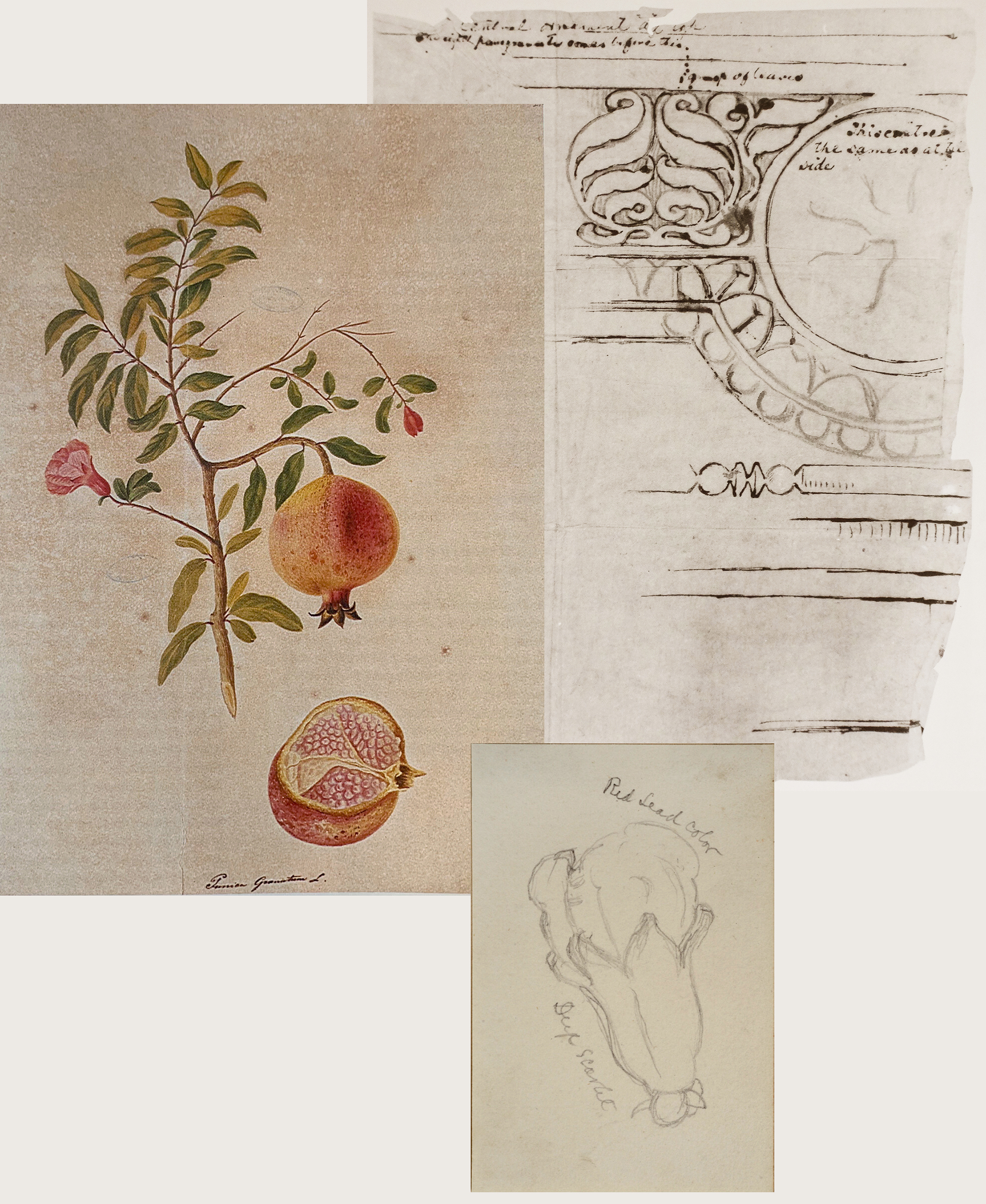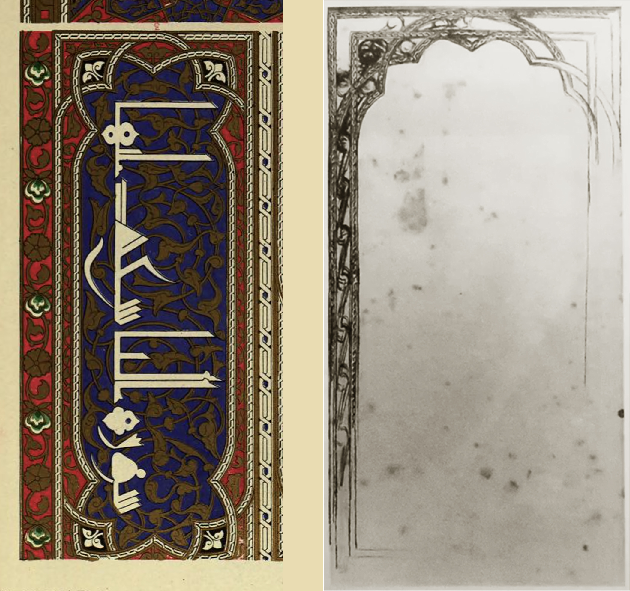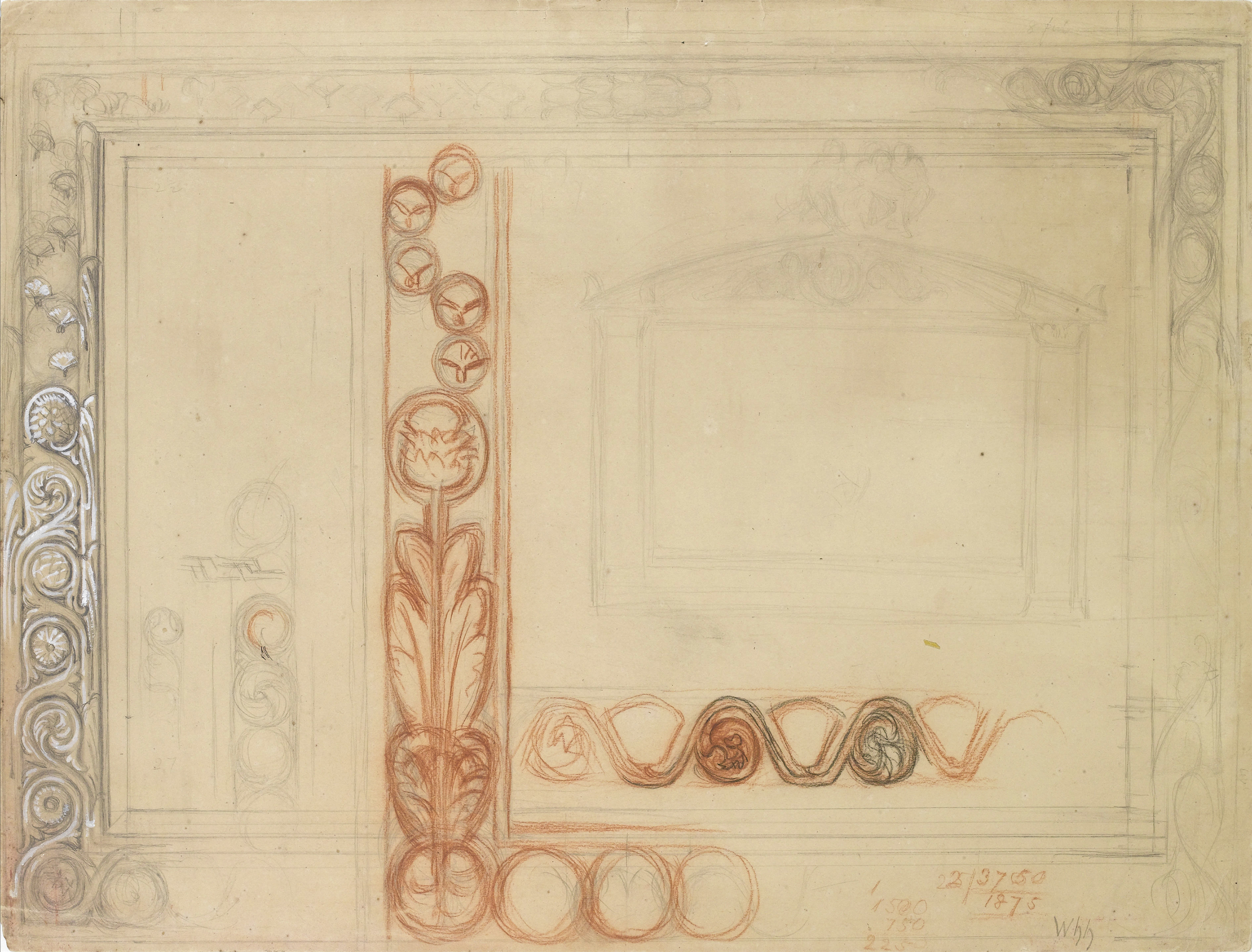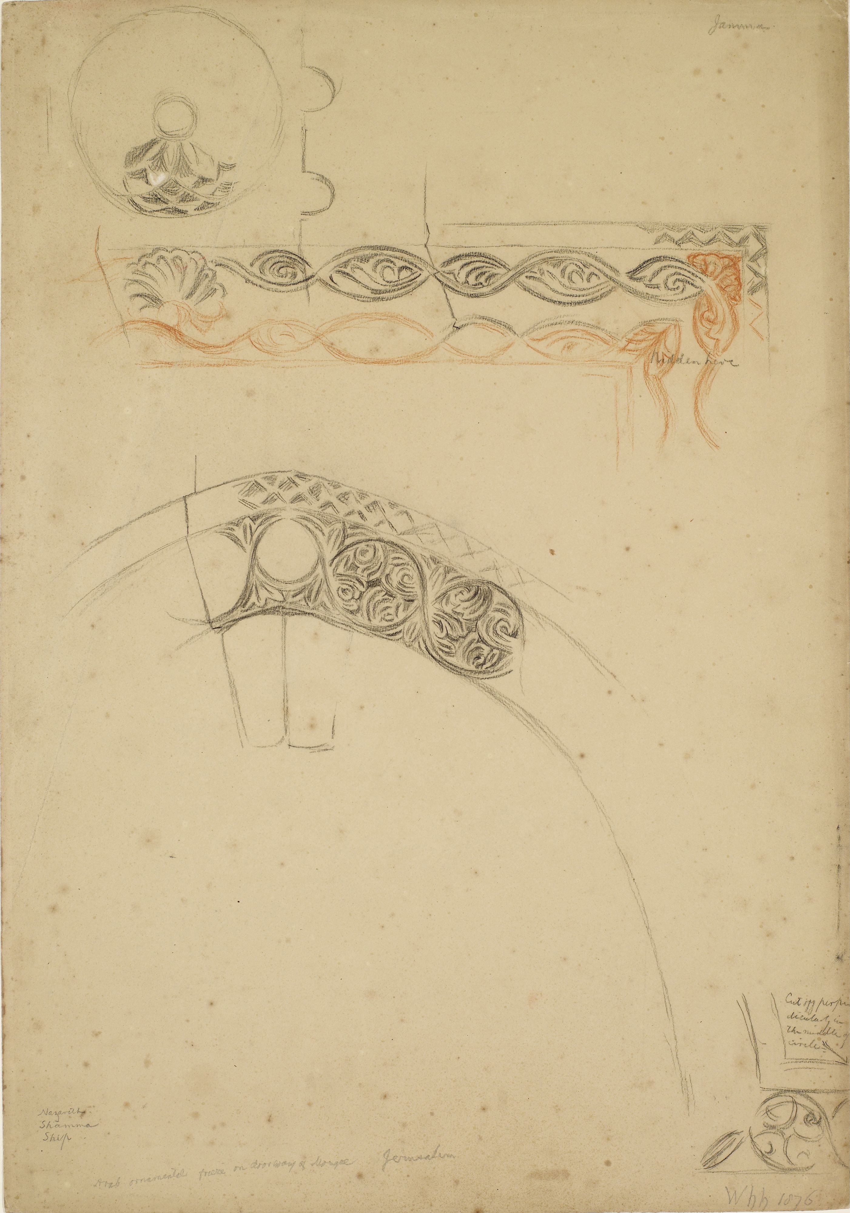 Owen Jones, ‘Arabian No 4‘ (reversed to show the top more clearly), and Holman Hunt, detail of a design for the frame of The afterglow in Egypt, c.1863, 50.8 x 34.9 cm., private collection