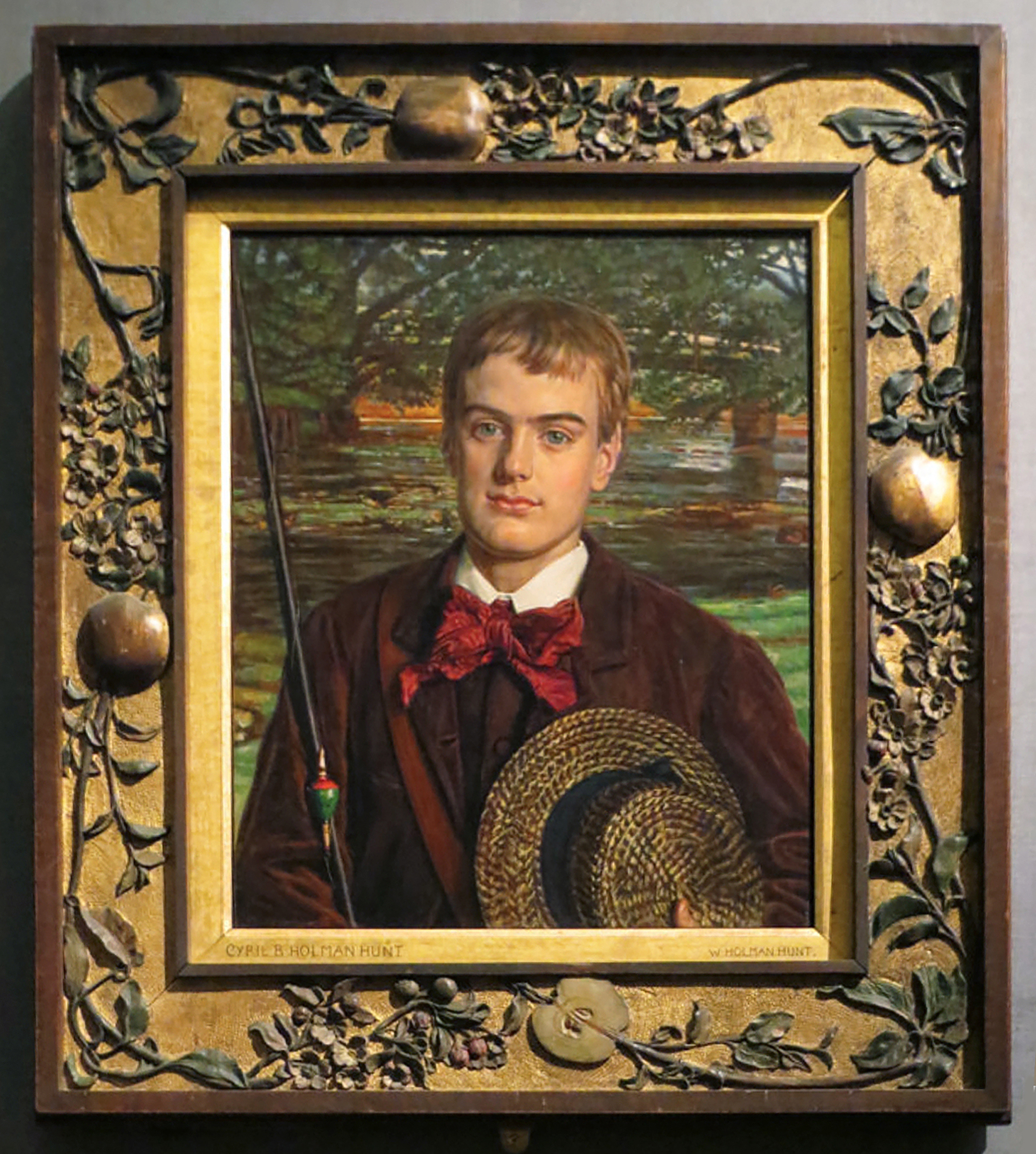 [22] See ‘National Gallery, London: a Venetian pastiglia frame‘ [23] Judith Bronkhurst notes that ‘the fish was understood as a sign for Christ as early as the second century’, and that Hunt was using the scale ornament to emphasize that the foreground figure was the young Christ; Bronkhurst, op.cit., vol. II, p. 181